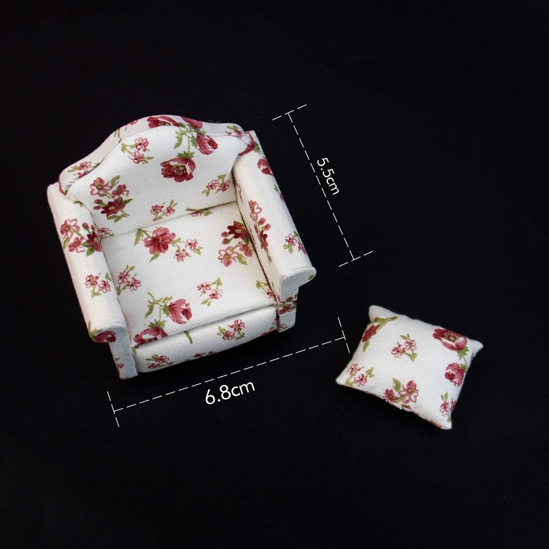 Specification: -Material: Wood and cloth -Size: Approx. 6.8*5.5*6.7 cm -Quantity:1 x Handmade dollhouse furniture sofa, Includes one pillow - Colors: As the pictures shown. Features: 1.Good for 1:12 2.Each sofa is skillfully finished and upholstered, realistic craftsmanship and excellent workmanship 3.This miniature is vividly designed, looking really cute