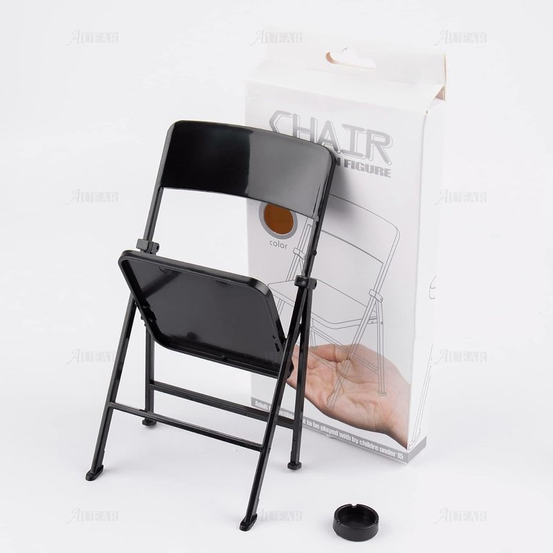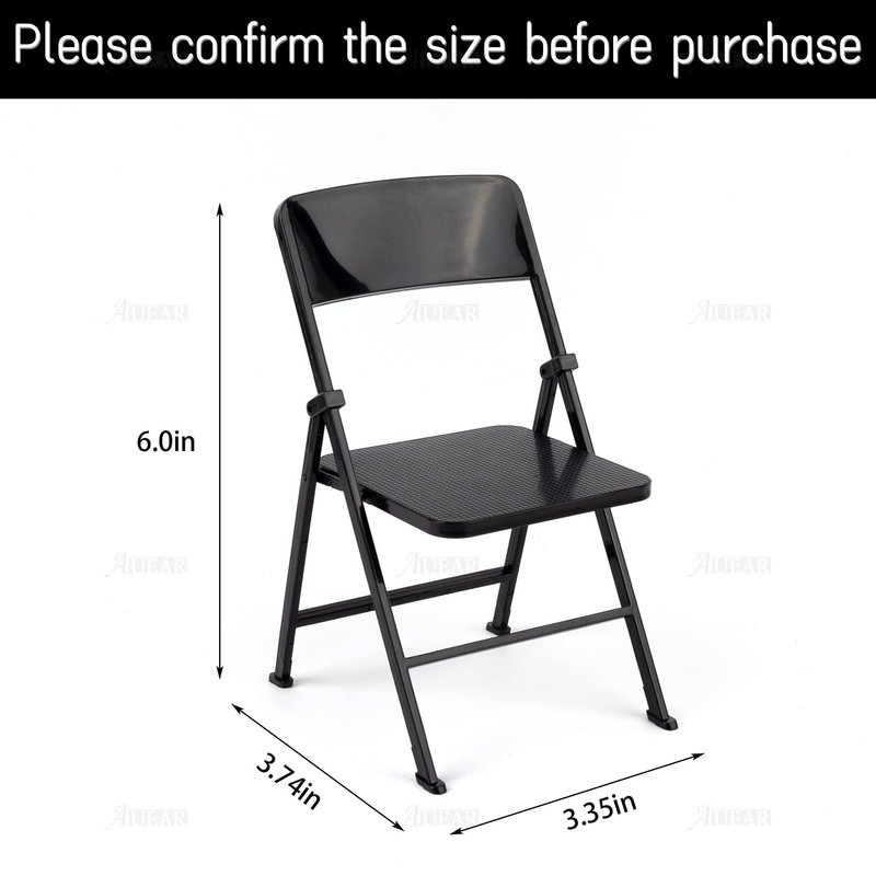 AUEAR, 12" Plastic Mini Foldable Chairs Decoration Miniature Furniture Black 1/6 Scale