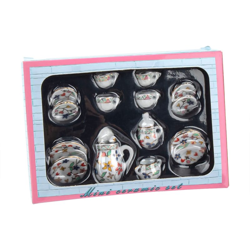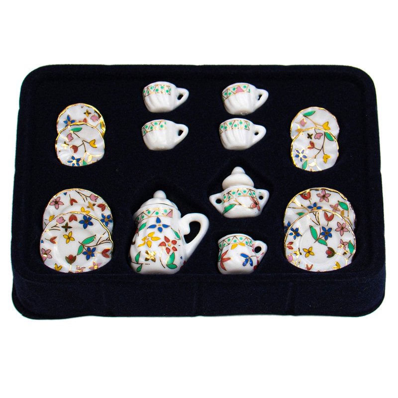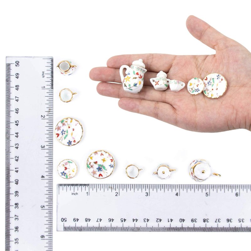- QUANTITY: 1 set 1 : 12 miniature tea set ,included 1 x Teapot, 1 x Sugar Bowl, 1 x Creamer, 4 x Dishes, 4 x Cups, 4 x Saucers