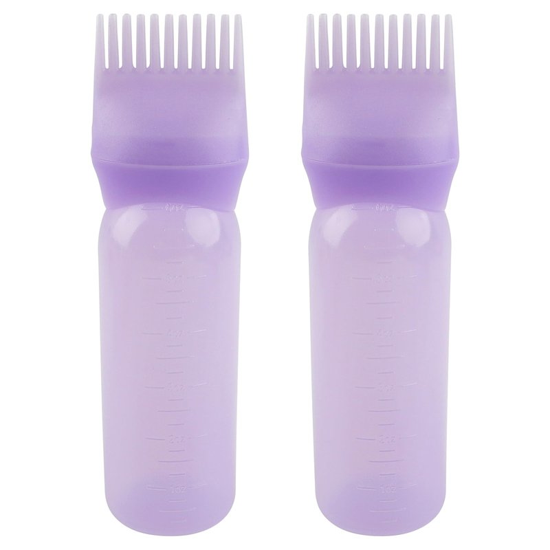 AUEAR, 2 Pack Purple Root Comb Applicator Bottles 6 Ounce Hair Dye Bottle Plastic Applicator Bottle Brush with Graduated Scale for Hair Dye