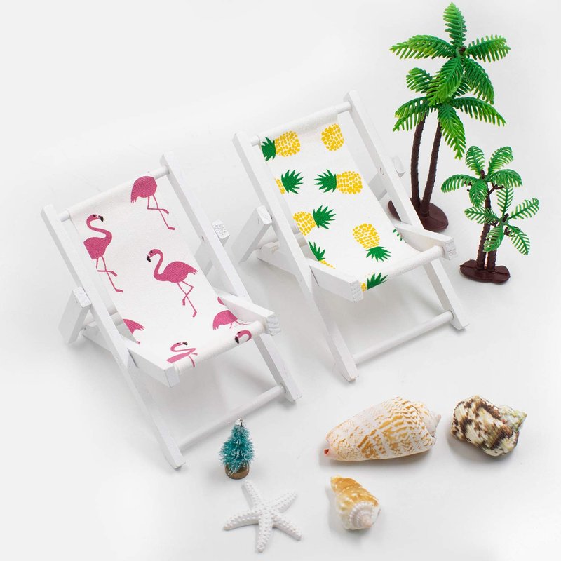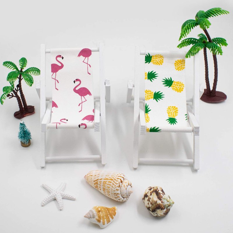 Specifications:- Size (L*W*H): Folded size: 6.3*3.54*0.39inch (16*9*1cm)Expandedsize: 5.7*3.6*3.46inch / (14.48*9.14*8.79cm)- Style: Flamingo, pineapple, palm leaf (3 different pattern)- Material: Wooden and cloth fabricPackage included: 3 x Miniature Beach ChairNotice:1.Due to differences in light and pixels, please take physical design and color shall prevail2.Size pure manual measurement with slight error, please don't mind it