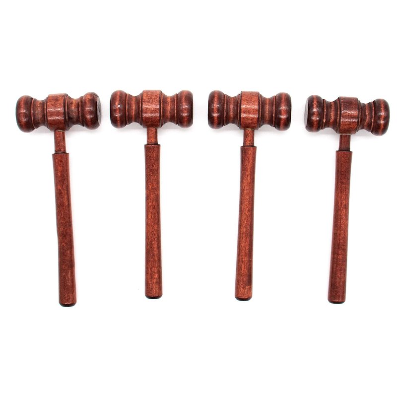 AUEAR, 4 Pack Wooden Judge Gavel Mini Judge Gavels Judge Auction Sale Wooden Gavel Judgment Gavel Prop for Cosplay Party Judge Costume Accessories (Light Brown)
