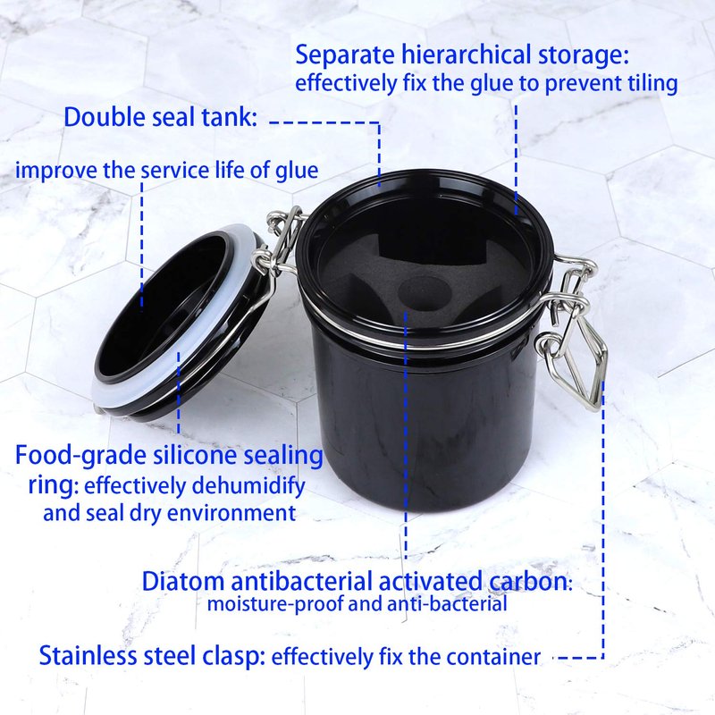 AUEAR, Eyelash Glue Storage Tank Lash Extension Organizers Activated Carbon Sealed Storage Jar Leak Proof Container Cylinder (Black)