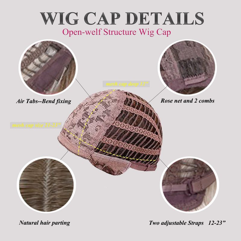 - ADJUSTABLE WIG CAP SIZE: Rose breathable wig cap with plastic hooks on the back of wig cap to adjust the wig perimeter for fitting different head sizes;Wig cap size: average(22").