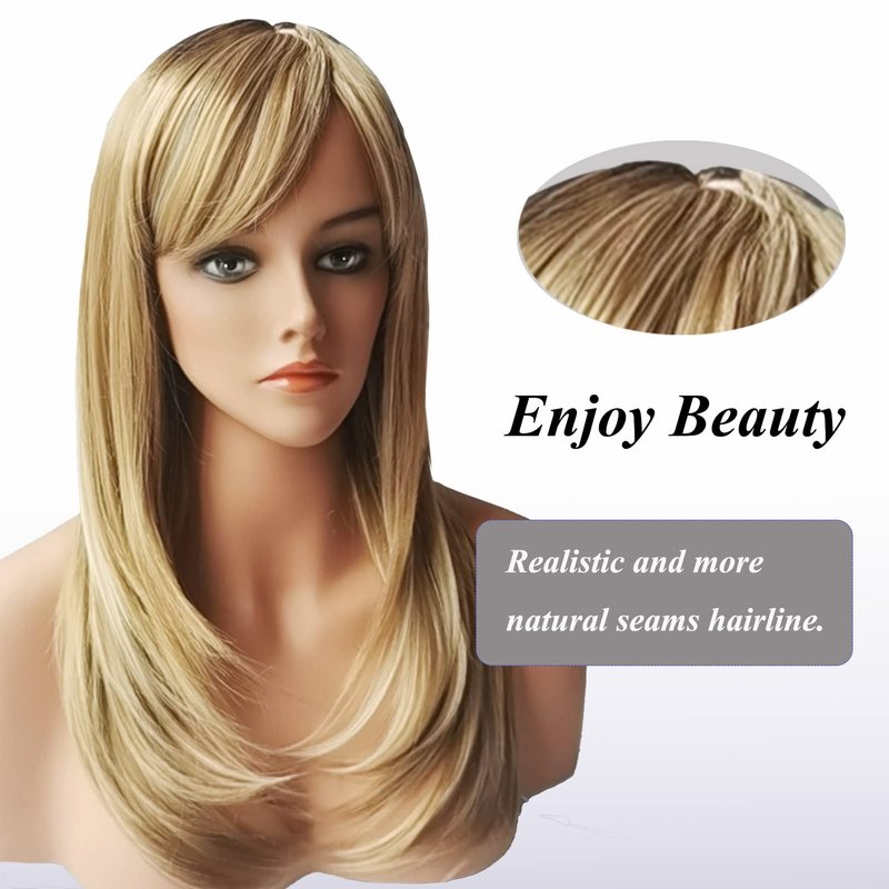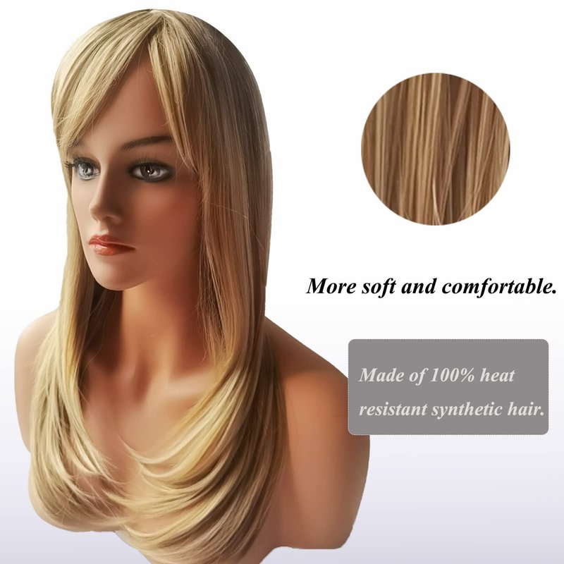 - WIG APPEARANCE: Natural feeling women stylish long straight blonde hair wigs with bangs, comfortable and fashion. (Kindly not that slightly color difference between different monitors)