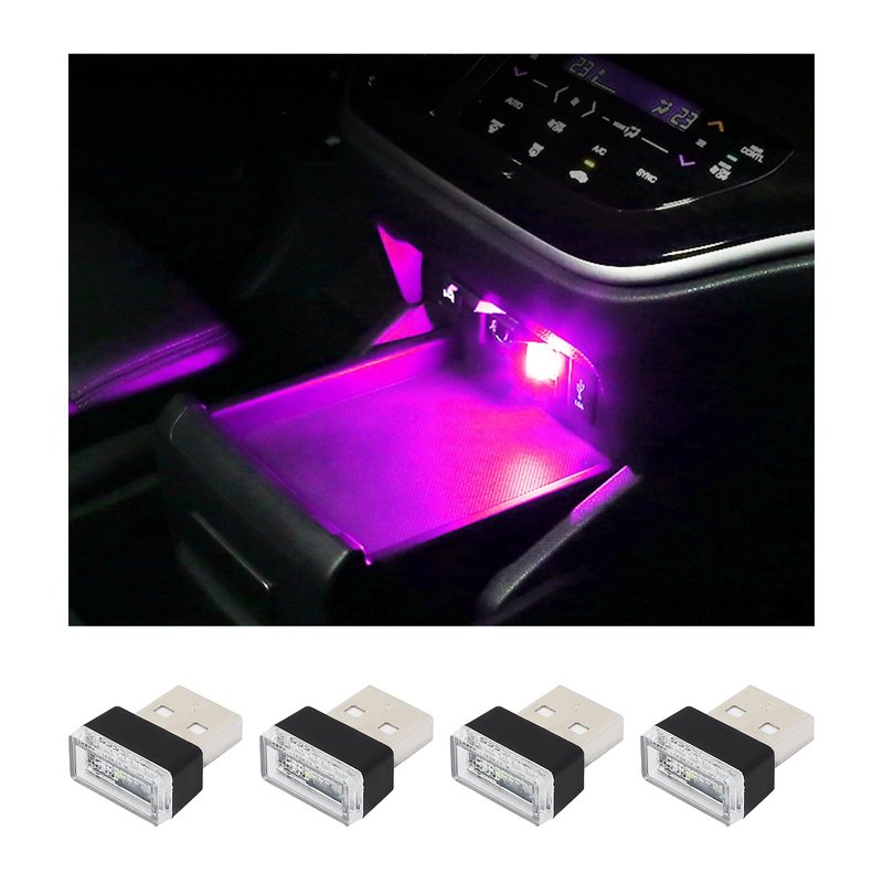 Augeny 4 PCS USB LED Car Interior Atmosphere Lamp, Plug-in USB Decor Night Light, Portable Auto Ambient Lighting Kit, Universal Vehicle Interior Accessories for Most Cars (Purple)