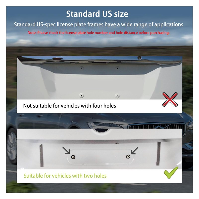 - 【Applicable Models】: This product is 11.9 inches long, 5.9 inches wide, and the distance between the two holes in the center is 9.1 inches. This product is only for series 3, 5, 7 and X1, X3, X4, X5, X6. Please make sure that the size of your car model, the number of holes in the license plate and the distance between the holes matches this product.