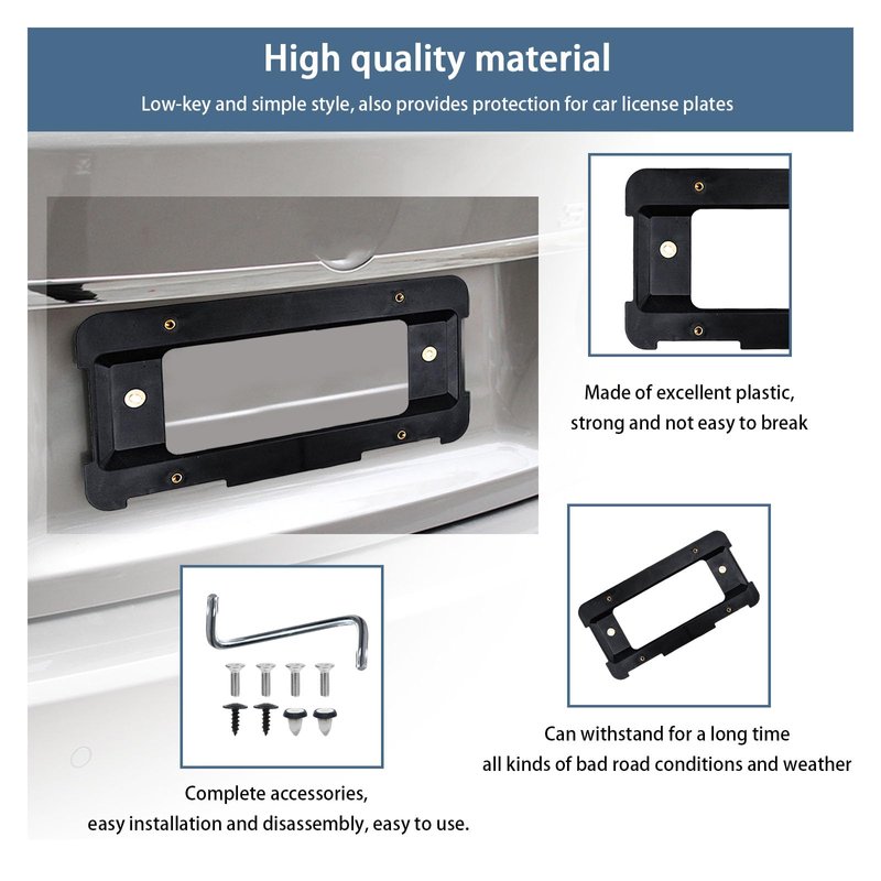 - 【Good Material】: This car license plate frame is made of high quality plastic. The material is sturdy and not easy to break, and it is weather resistant. It can withstand all kinds of bad road conditions and unpredictable weather outside the car for a long time, as well as sun exposure or low temperature. It always stays firmly in place.