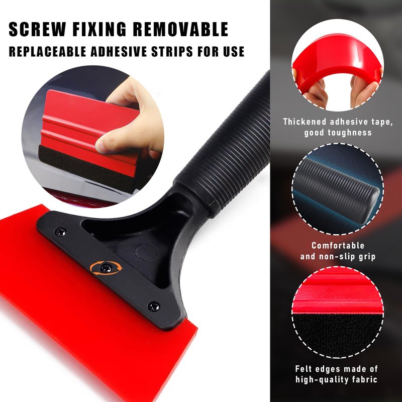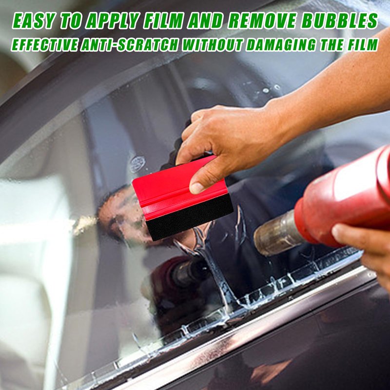 - 【Smooth & Scratch Free】: The versatile felt squeegee, designed for vinyl applications, excels at tasks like water removal, dust cleaning, and air bubble elimination, ensuring a flawless and scratch-free window tinting installation. Felt edge squeegee made of high quality fabric felt edges,is greatly reduce scratches and marks on the surface on vinyl surface when install.