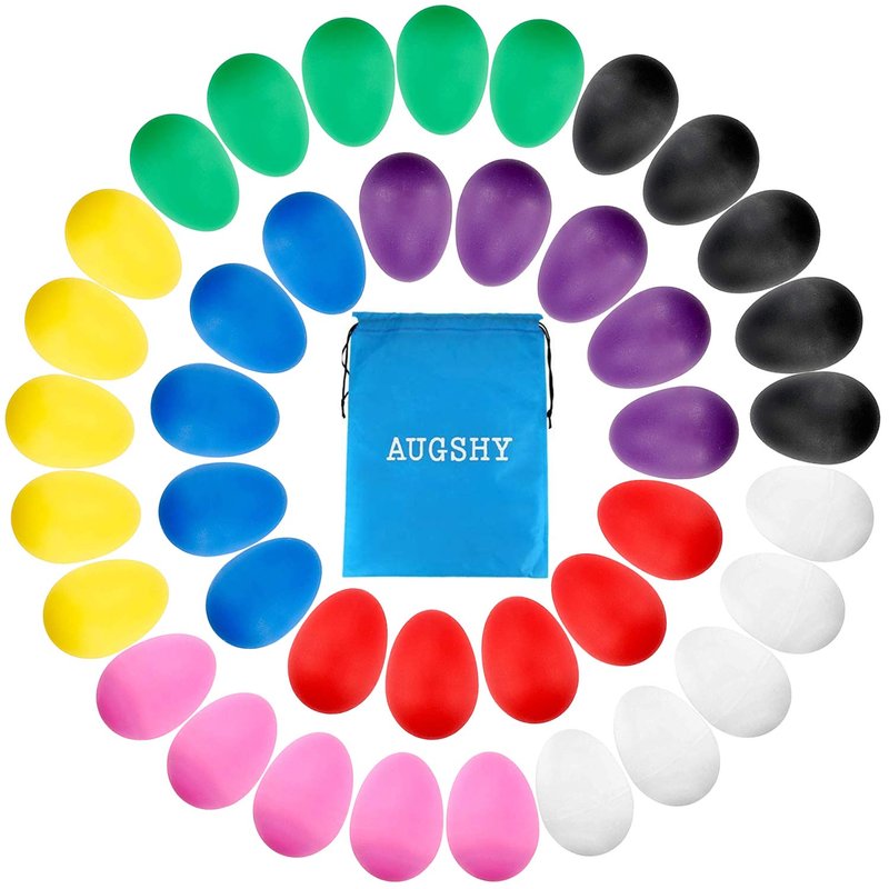Augshy 18PCS Plastic Egg Shakers Percussion Musical Egg Maracas Easter Eggs with 8 Colors