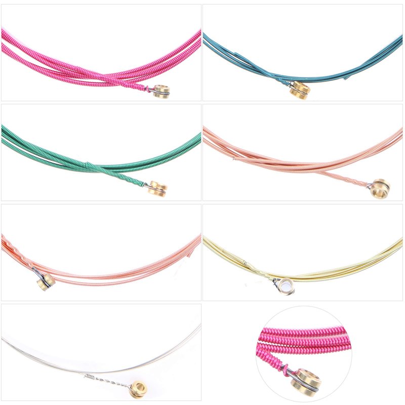 - 3 Sets of acoustic Guitar Strings - 1 Set in brass,1 set in copper,1 set in multicolor. Each set has 6 strings in 6 different diametersE-1st .012in / 0.3mm; B-2nd .016in / 0.4mm; G-3rd. 024inch / 0.6mm; D-4th.032inch / 0.81mm; A-5th .042inch / 1.06mm; E-6th .053in / 1.34mm.Great for guitar beginners to remember and practice; Also fits for guitarist DIY.