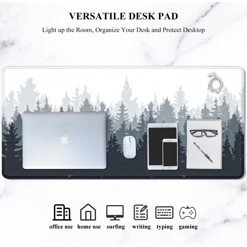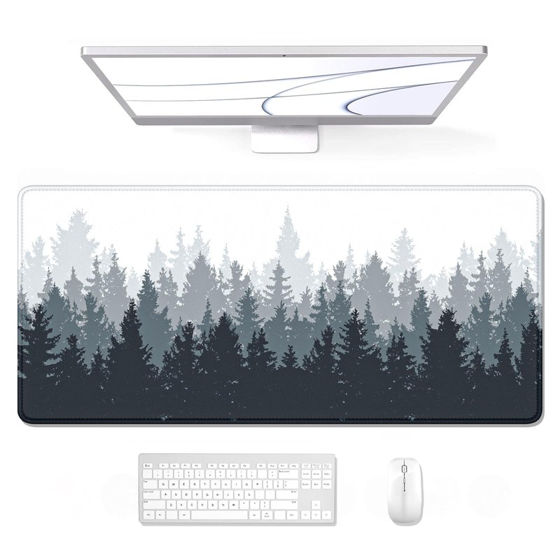 Auhoahsil Large Mouse Pad, Full Desk XXL Extended For Gaming 35" X 15", Waterproof Mat with Stitched Edge, Non-Slip Laptop Computer Keyboard Mouse Pad for Office & Home, Misty Forest Design