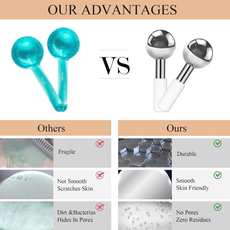 Ice Globes Facial Skin Care Tools for Women Face Eyes, Stainless Steel Face Beauty Cryo Sticks for Girls Ladies, Esthetician Supplies Cooling Spa Globes Cold Roller