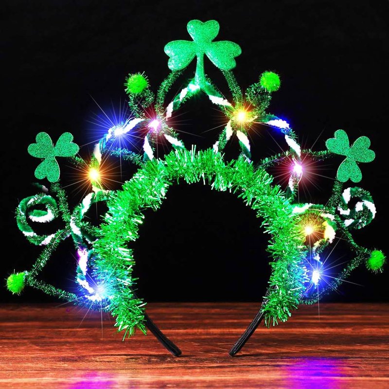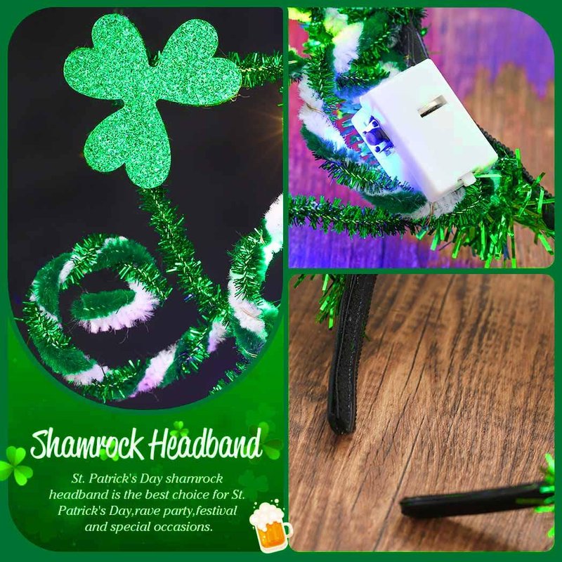 - Light up shamrocks headbands for women is made of sparkly shamrock and lights.Festival hair piece is very durable, lightweight, soft, comfortable to wear.