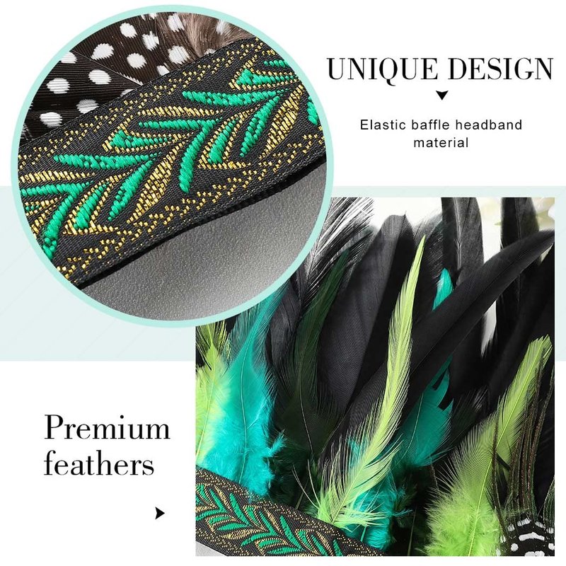 Aukmla Peacock Feather Fascinator Decorative Feather Headpiece Crown Headdress Costume Headband for Party (Green)