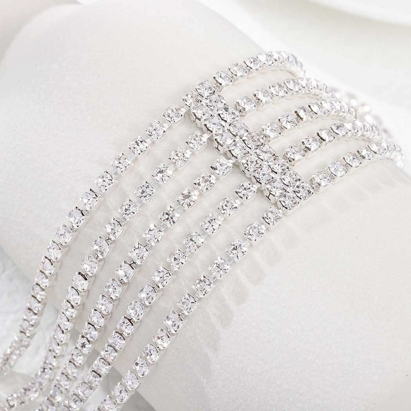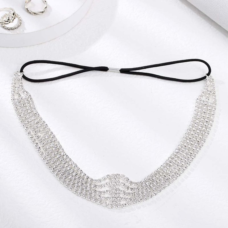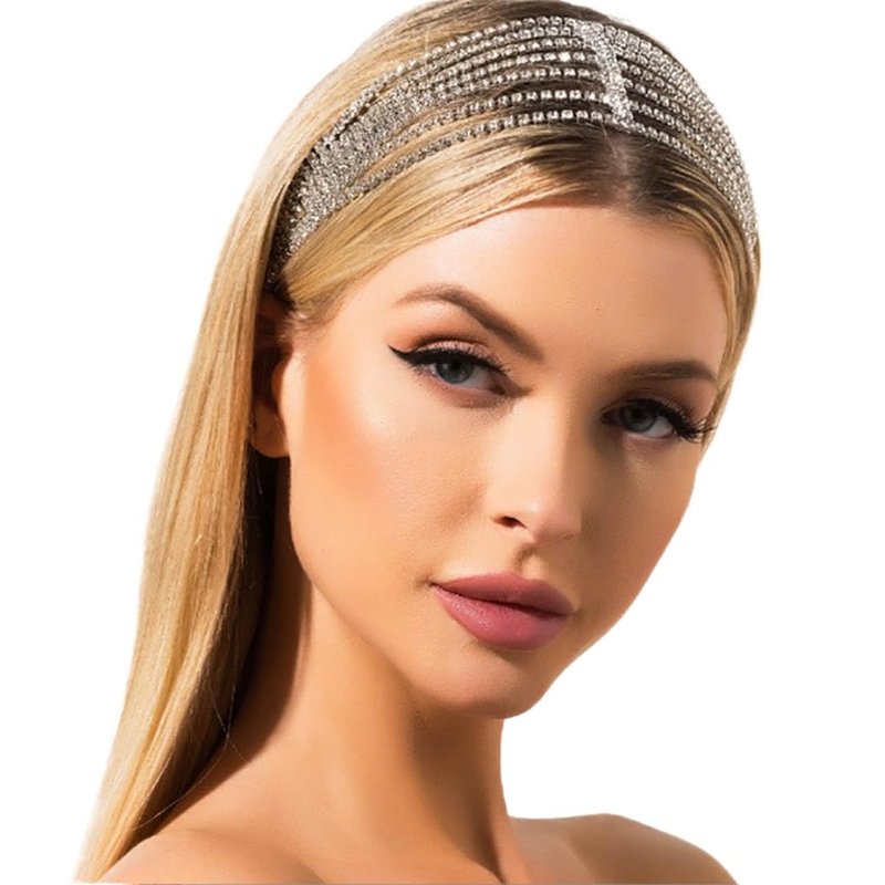 Aularso Layerd Head Chain Rhinestone Hair Jewelry Silver Elastic Headpiece Wedding Crystal Bridal Prom Costume Headband for Women and Girls (Silver)