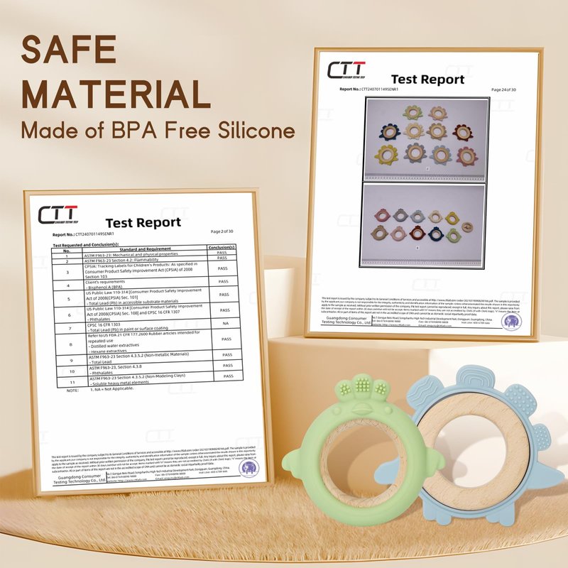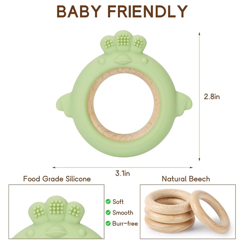 - Safe Material: Our Baby Teething Toys are made from food-grade silicone and beech, ensuring they are safe for your little one to chew on. Free from BPA, Phthalate, and Lead, providing peace of mind for parents.