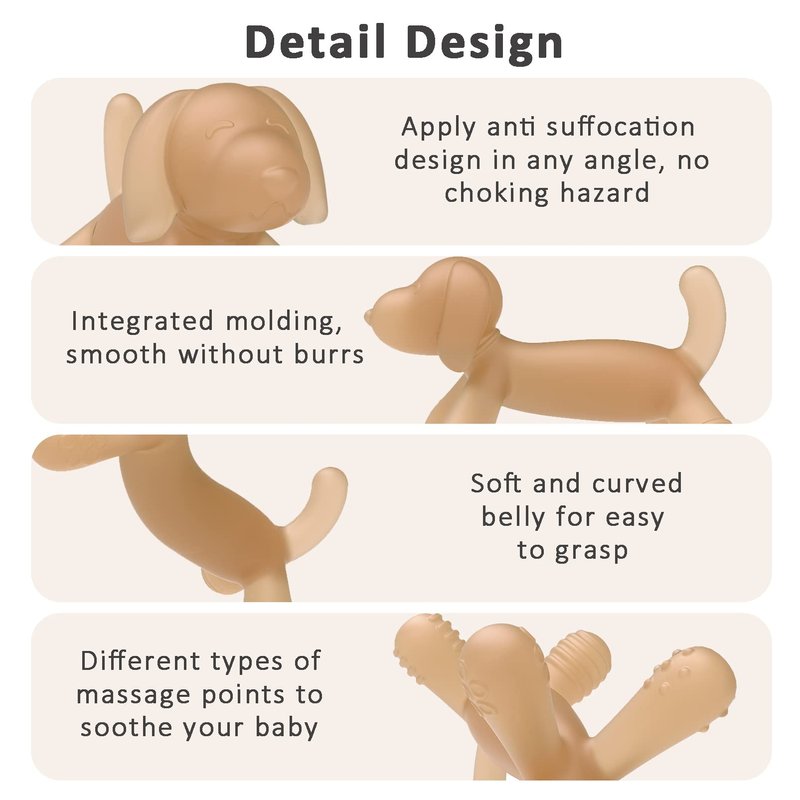 - 【NO CHOKING HAZARD】Our dog shape teethers have been applied anti suffocation design according to requirement in any angle, can effectively prevent the risk of suffocation when the baby is chewing or playing.