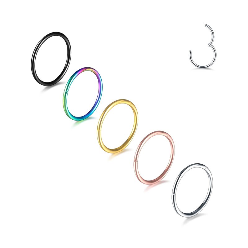 Aumeo 14G 16G 18G 20G Nose Ring Hoop Stainless Steel Hinged Segment Ring Hoop Nose Clicker Ring Tragus Helix Cartilage Daith Rook Earring Piercing Jewelry for Women Men (5pcs 20g 7mm Mixed Colors)