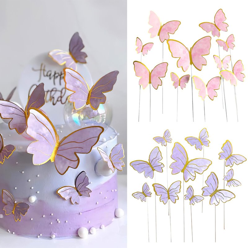 - Package Includes: 20 pieces of pink, purple butterfly cake toppers.