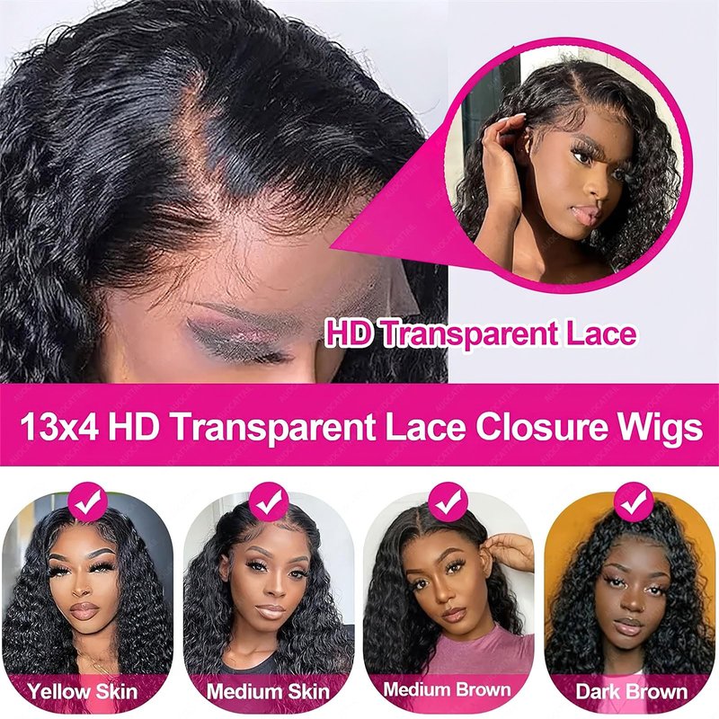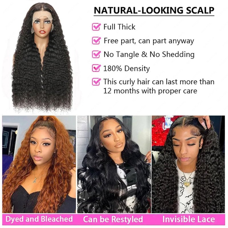 - Deep Wave Curly Wigs Non-shedding and non-knotting, can be dyed and bleached