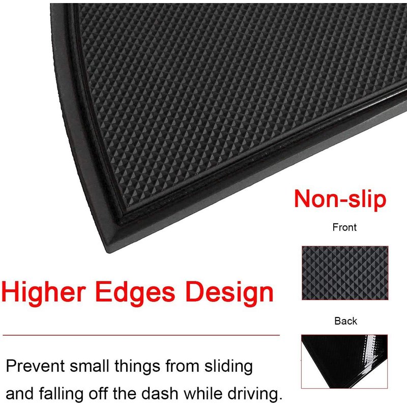 - [3] Make of Premium Rubber. Soft Surface, no slip, textured rubber mats, 4 sides slightly higher just like the walls to prevents items from sliding and rattling in this soft tray when you are driving.