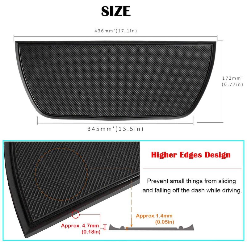 3.With Non-Skid Backing&textured surface, provide a convenient way for you to keep your car more neat, Keep your dash board in a more organized shape, you can put your Sunglasses,Coins, pen etc. in it.