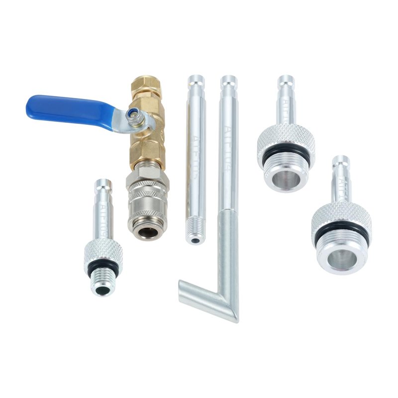 - 【Package Includes】6pcs x transmission Fluid Oil Filler Adapter kit includes 1pc x hook tube, 1pc x 09G transmission adapter, 1pc x 01J CVT adapter, 1pc x 722.9 adapter, 1pc x DSG transmission adapter, 1pc x metal distributor.