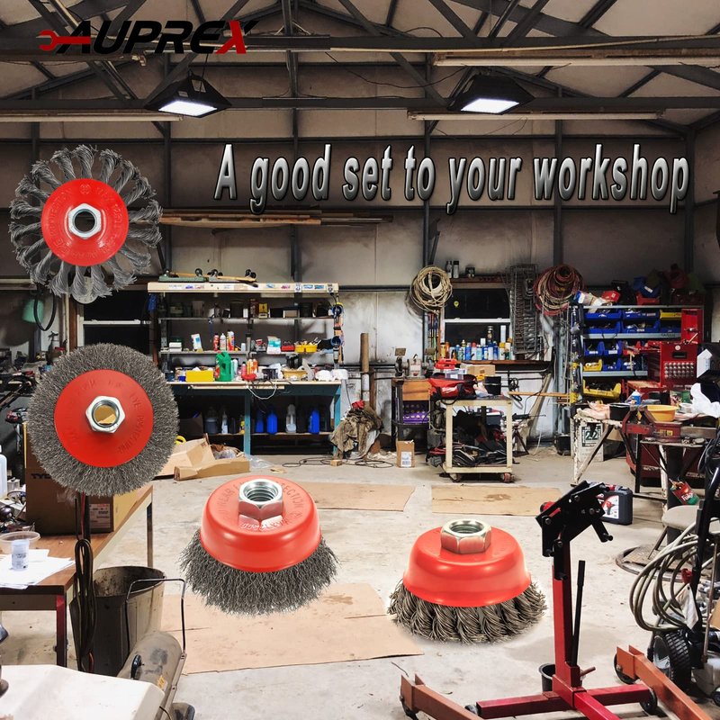 - IN PACK: 3” Knotted wire cup brush*1,4” knotted wire wheel brush*1, 3” crimped wire cup brush*1, 4” crimped wire wheel brush*1.