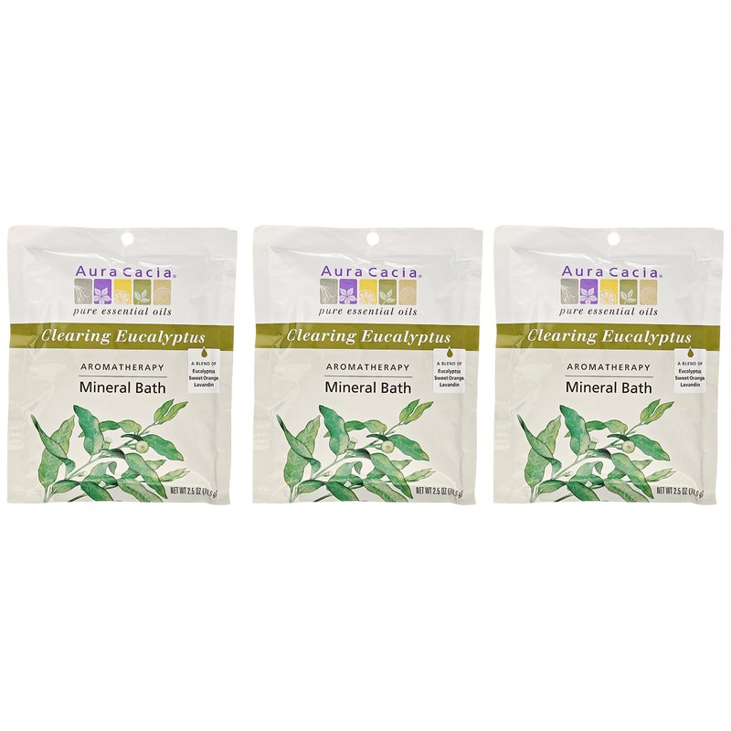 Aura Cacia Aromatherapy Mineral Bath, Clearing Eucalyptus, 2.5 ounce packet (Pack of 3)
