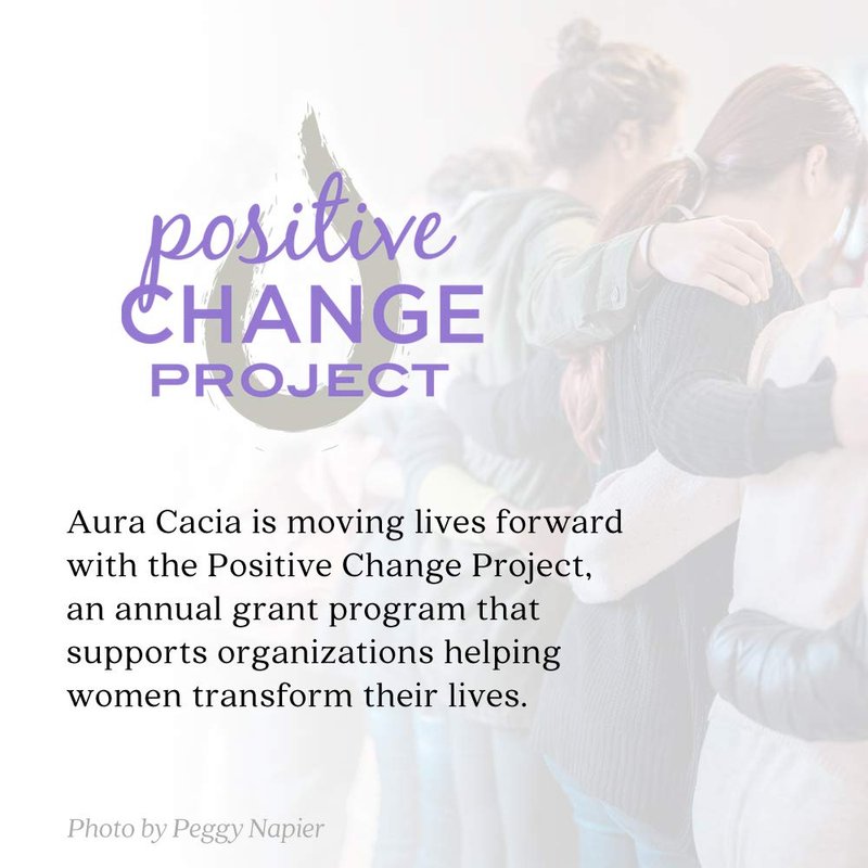 - Aura Cacia Positive Change Project is moving lives forward with an annual grant program that supports organizations helping women transform their lives.