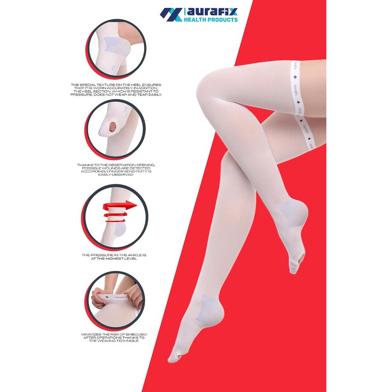 Aurafix - Thigh High Anti Embolism Compression Stockings for Women Men-Socks-Medical Post Surgery Compression Garment-Ted Hose-15-20 mmHg Compression Support Antiembolic Toe Hole (X-Large)
