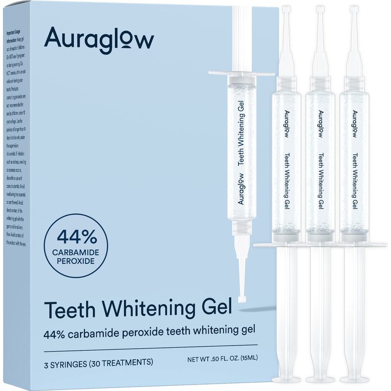 Auraglow 44% Teeth Whitening Gel Syringe Refill Pack, 44% Carbamide Peroxide, (3X) 5ml Syringes, 30 Whitening Treatments