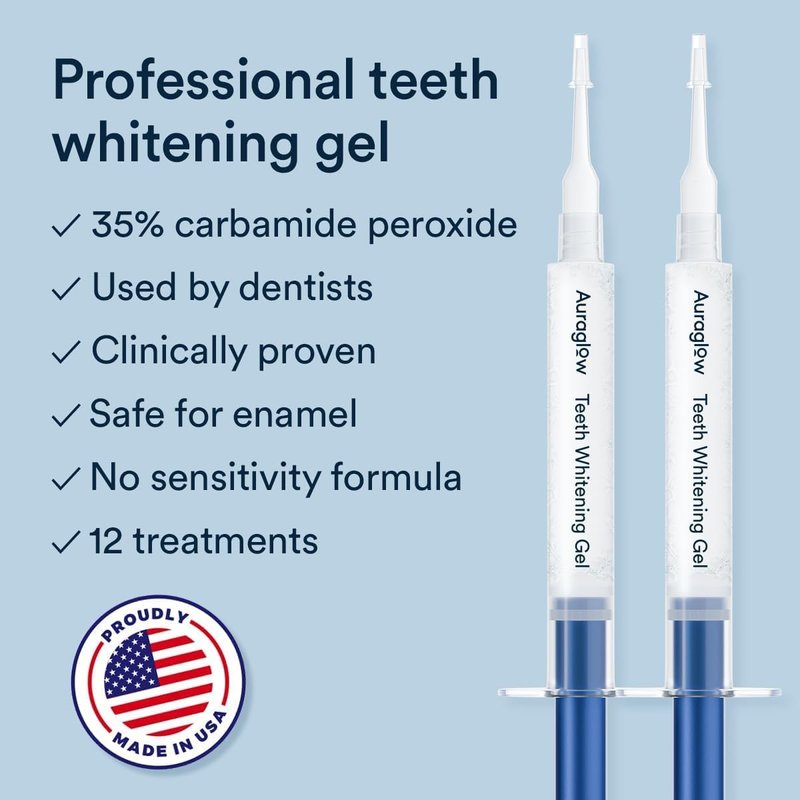 Auraglow Teeth Whitening Kit, Wired LED Accelerator Light, 35% Carbamide Peroxide Teeth Whitening Gel, 12 Whitening Treatments, Whitens up to 10 Shades in 7 Days