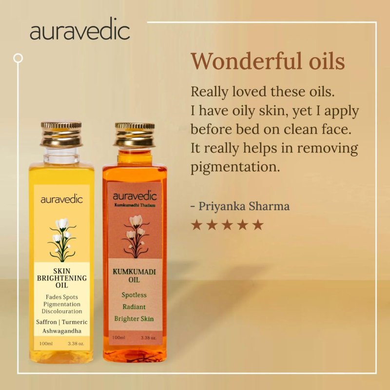 - Clean, Ayurvedic Skincare Solution: Free from parabens, sulfates, and artificial fragrance, this oil is inspired by Ayurvedic traditions and made with plant-based ingredients. With saffron, Vitamin C, and natural oils, it offers a holistic approach to skincare that supports a glowing, healthy look every day.