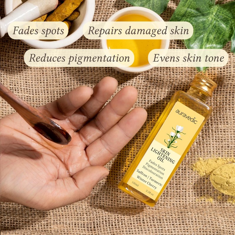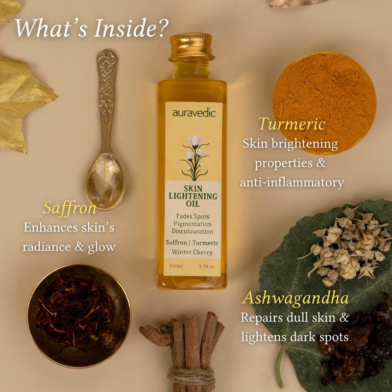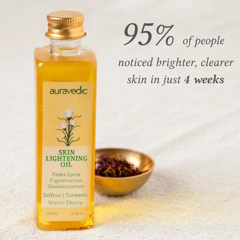 Auravedic Skin Oil 100ml (3.38 Fl Oz) for Radiant Skin | with Saffron Ashwagandha & Turmeric | Massage Oil for Face | for Adult with Oily Dry & All Skin | Organic and Natural