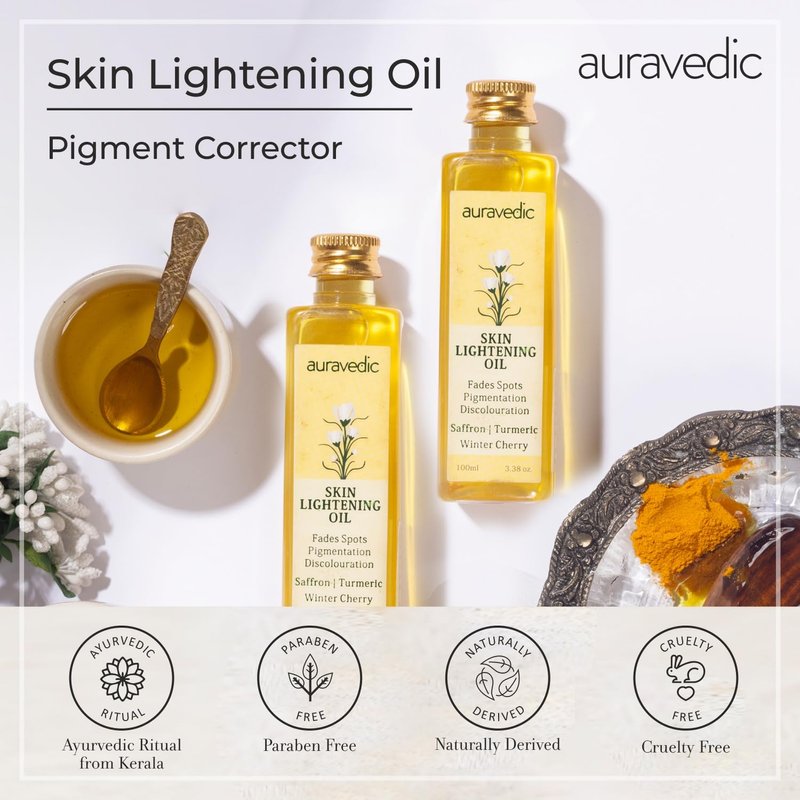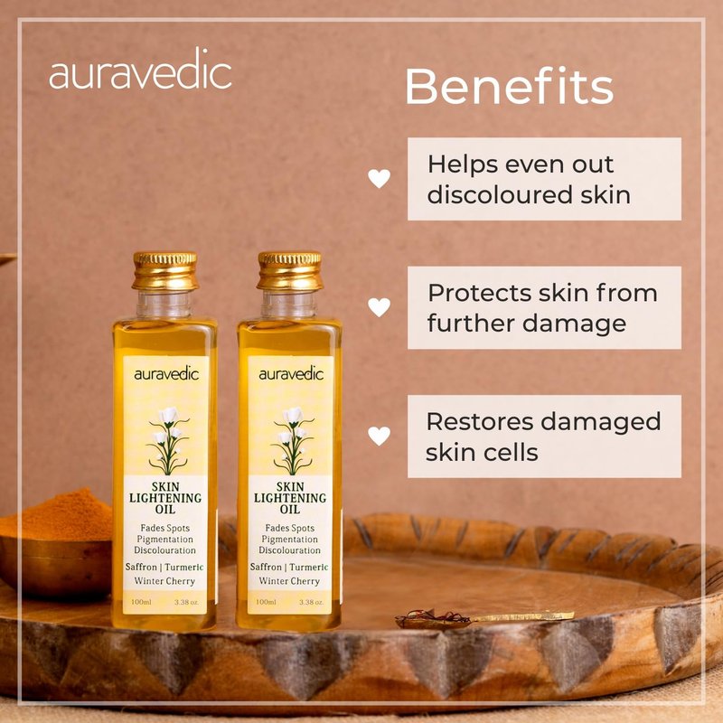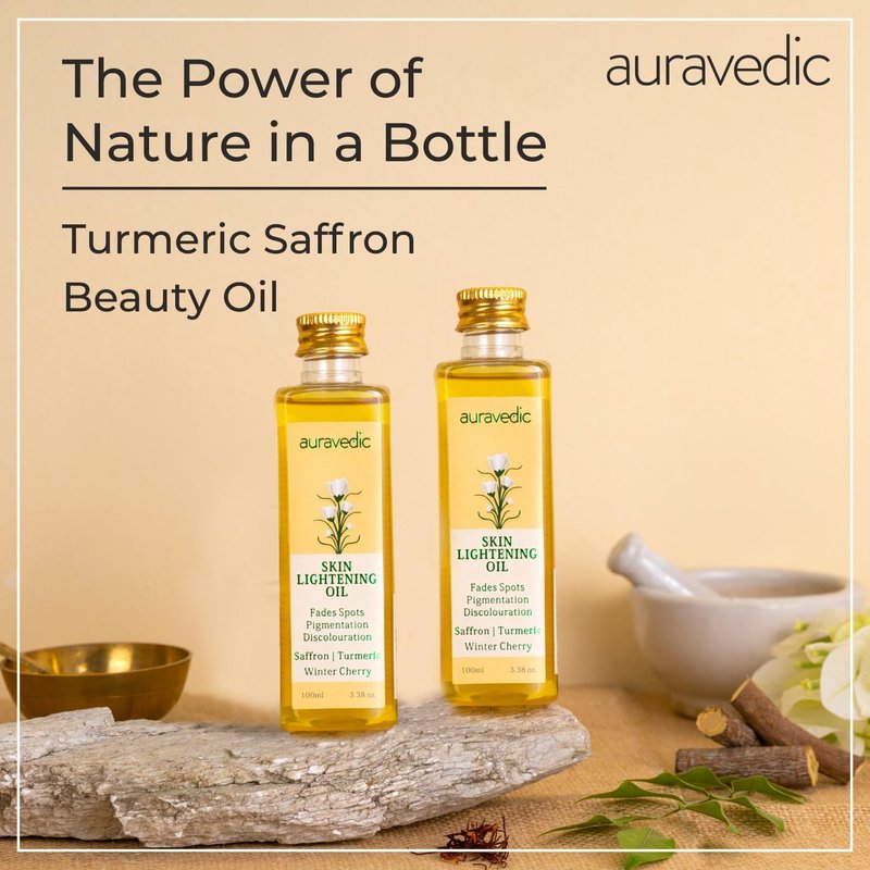 Auravedic Skin Oil 3.38 Fl Oz (Pack of 2) | with Saffron Ashwagandha & Turmeric | Dry Skin Moisturizer | Natural & Organic Massage Oil for Face
