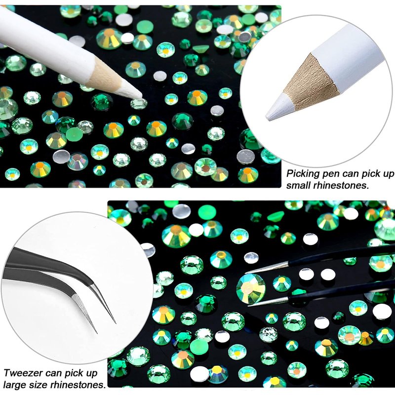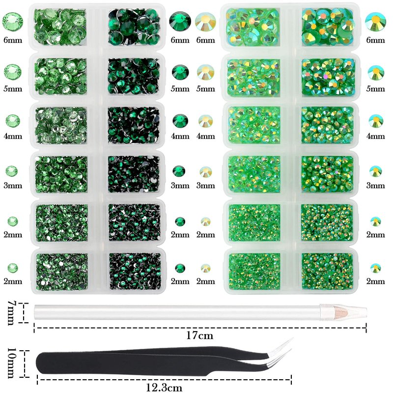 WHAT ABOUT US? AUREHEN is the premier online retailer for all things crystals and gemstones. Our extensive collection includes unique stone varieties from all over the world, and we’re always on the hunt for the highest-quality products for our customers! Whether you’re looking to buy crystals for your collection or to enhance your spiritual practice with healing stones, we have something for everyone to enjoy. Explore our online crystal shop and enjoy the best the gemstone world has to offer! Our crystal elements have an excellent shine, very similar to Swarovski. This is due to its high quality. The best option to choose when the purpose is to shine at a great price. Suitable for use in almost anything. WHAT ARE THE ADVANTAGES OF RESIN RHINESTONES? Compared to glass rhinestones, resin rhinestones have many advantages such as being lightweight & cheaper, environmentally friendly, and come in more colors with more effects. WHAT YOU WILL GET? Green Series Resin Rhinestones * 15000 (pieces) Tweezer * 1 (piece) Picker Pen * 1 (pieces) WARM TIPs: 1. Item color may have a little difference in different screens, this is normal phenomenon. 2. Size is measured by hands ,there may have 0.2-0.5mm deviation. 3. These rhinestones are not hot fix rhinestones and they are not self-adhesive, so you need to apply glue to stick them. And the glue is not included in the package.