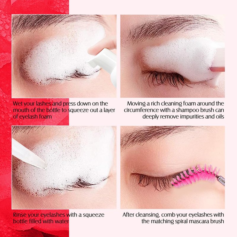 - Perfect for home salon use: The lash cleaner is easy to use. Simply pour the foam bottle and shake the eyelash shampoo before using, then use the lash shampoo brush to apply the foam to the lashes, massage for a few minutes and then rinse with water. then use the lash shampoo brush to apply the foam to the lashes, massage for a few minutes and then rinse with water.