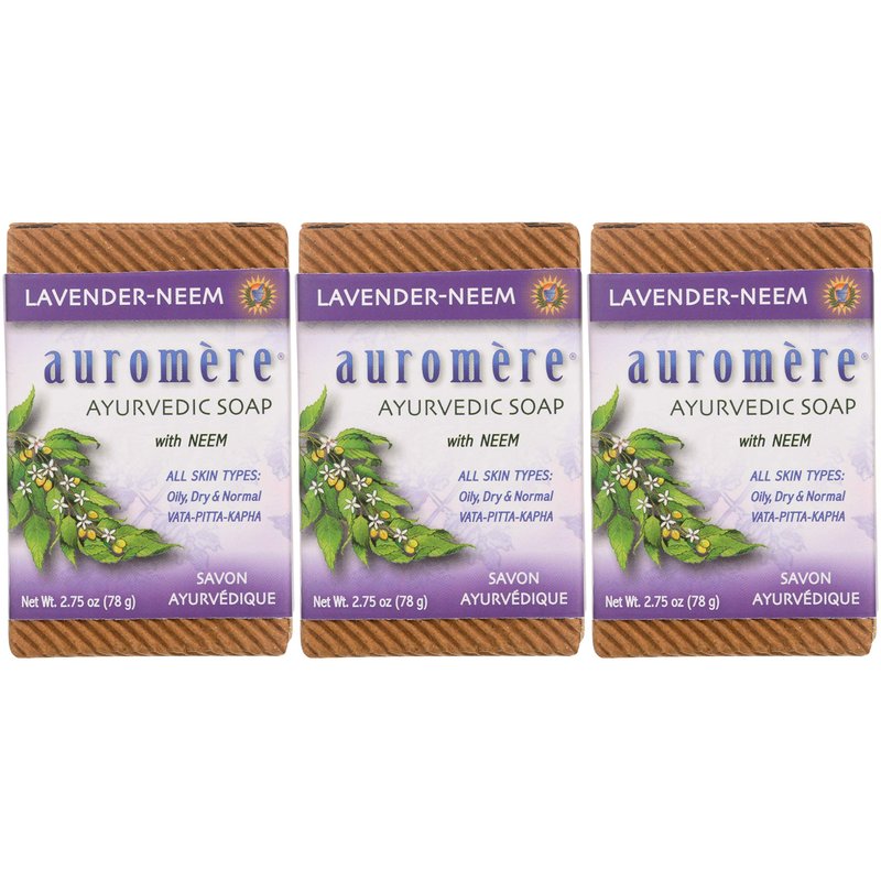 Auromere Ayurvedic Bar Soap, Lavender Neem - Eco Friendly, Handmade, Vegan, Cruelty Free, Natural, Non GMO (2.75 oz), 3 pack