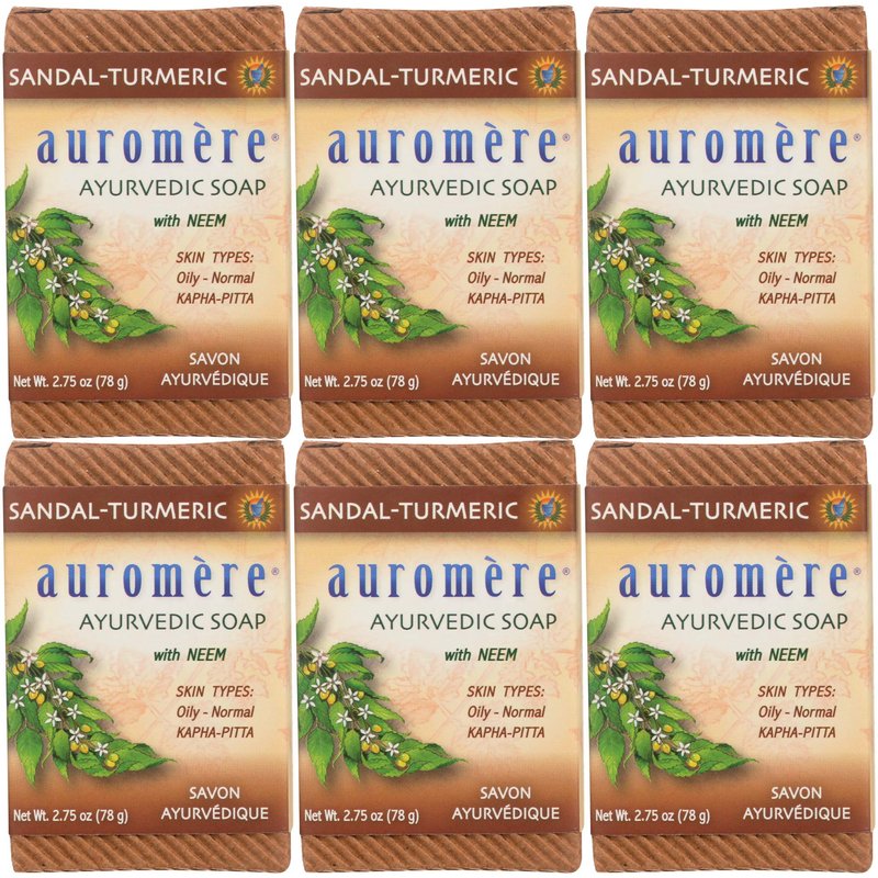 Auromere Ayurvedic Bar Soap, Sandal Turmeric - Eco Friendly, Handmade, Vegan, Cruelty Free, Natural, Non GMO (2.75 oz), 6 pack
