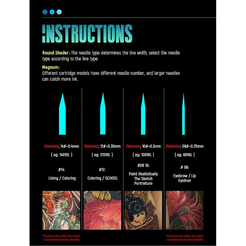 - Clear tip get better visibility tattooing , Ethylene Oxide Gas Sterilized and Individually Packaged, single use only