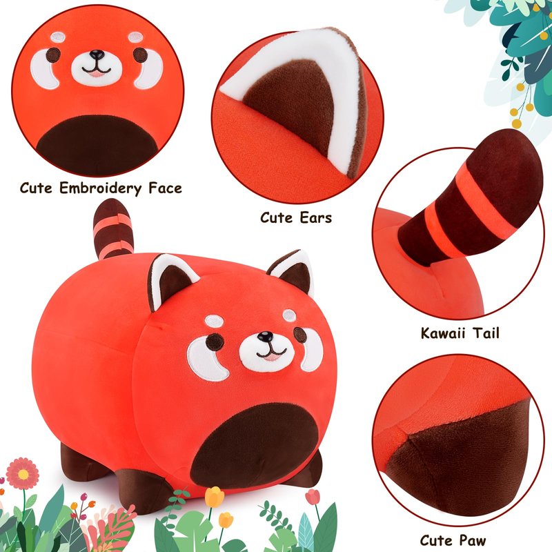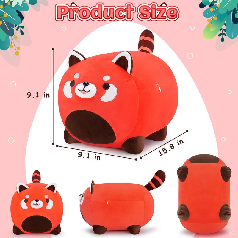 - 🎁【Perfect Gift】The kawaii cuddly red panda stuffed measures 15.8", no one can refuse this a delightful present. Embracing this red panda stuffed animal helps melt away all bad moods and work stress! It can be used for kids' birthdays, Halloween, Christmas, Valentine's Day, Thanksgiving. It will bring good luck to your family and friends! Why not choose this cute plush to express your concern for your girlfriend, child or friend. your friends, family, and loved ones will love it very much!
