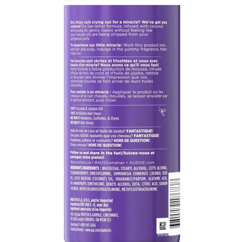 Aussie 3 Minute Miracle Curls Detangling Deep Conditioner quenches dry, tangled hair in just 3 minutes, and detangles fast with up to 90% less hair breakage. The creamy formula absorbs quickly and deeply to transform damaged, dry curls into soft, silky, ready-to-style strands.