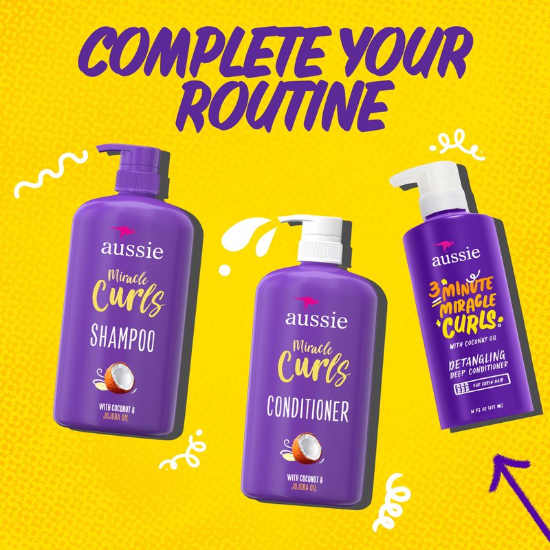 Aussie 3 Minute Miracle Curls Detangling Deep Conditioner Treatment with Coconut Oil, 16 Fl Oz, Paraben and Sulfate Free