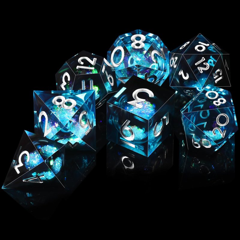 - Great Game Dice - The sharp edge liquid core resin dnd dice set are perfect for Dungeons and Dragons, MTG, Shadowrun, Pathfinder, Yahtzee, math games, and other table games etc.