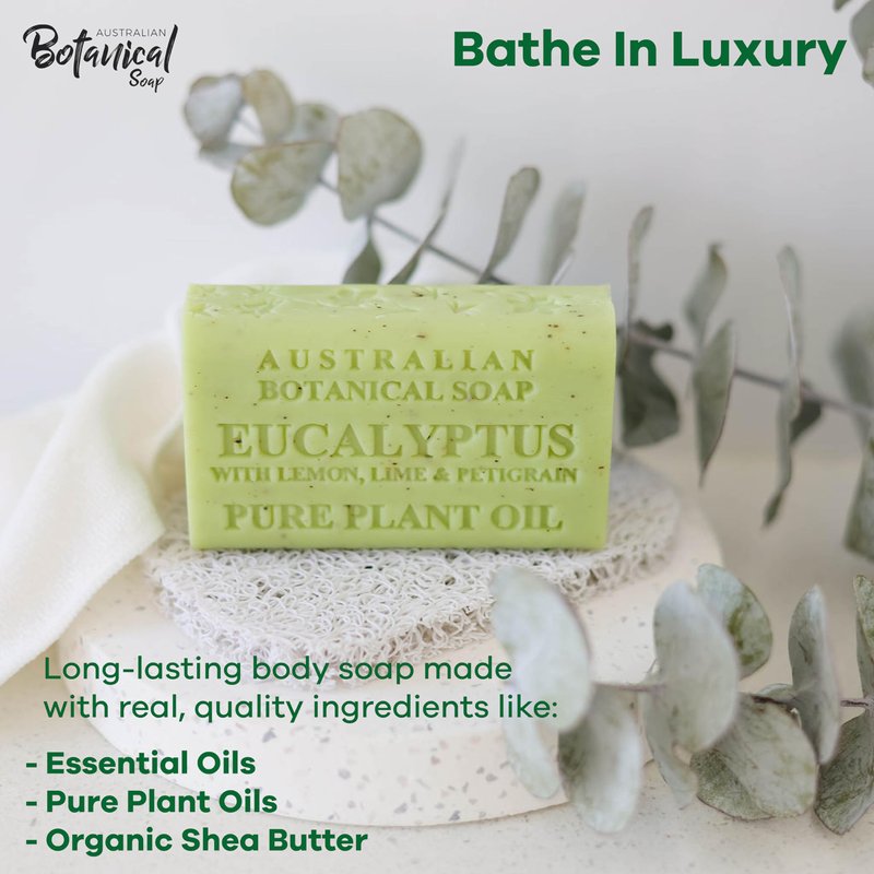 - Eucalyptus Soap - Formulated for those looking for a gentle cleansing soap bar. Our Eucalyptus with Lemon, Lime, and Petitgrain Soap will leave your skin feeling nourished and soft. The crisp scent of Australian Eucalyptus Oil will awaken the senses, while the added Lemon Myrtle leaf with gently exfoliate to help promote your skin's natural radiance.