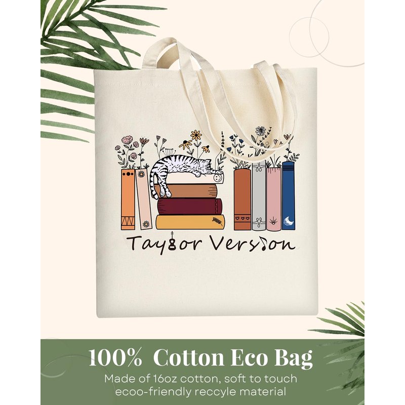 AUSVKAI Cute Canvas Tote Bag Aesthetic For Women Book School Book Grocery Bag Cotton Cloth Beach Totes Gift For Kids Girl-Cat