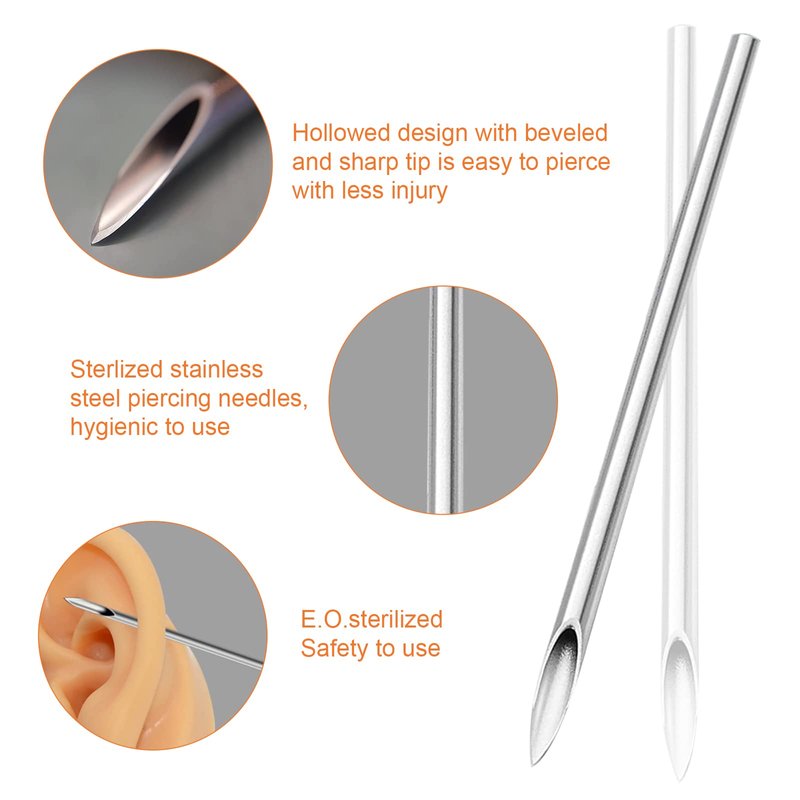 - STANDARD CLEAN - Each Piercing Needle is 100% cleaned. Package stamped with clean date and clean expiration date. All hollow needles are in individualized package. Professional and safe.