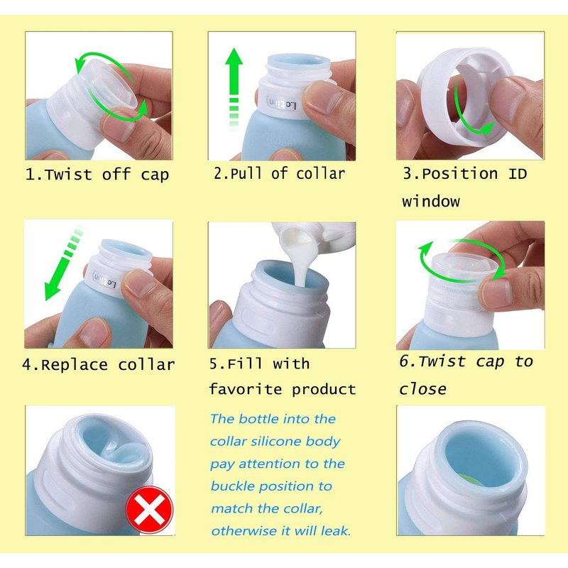 2.Do not fully fill your silicone squeeze bottles to avoid leakage on pressured airplanes. Just fill it with the 3/4 total volume is enough